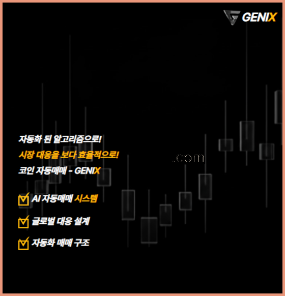 지닉스 봇 시스템 GENIX는 기존 알봇 ALBOT을 전면 리뉴얼하여 탄생한 AI 기반 코인 코인AI거래 플랫폼입니다. 지닉스 봇 시스템는 안정적인 수익을 내는 것을 목표로 하고 있으며, 현재 글로벌 코인 코인AI거래 솔루션으로 운영중입니다.